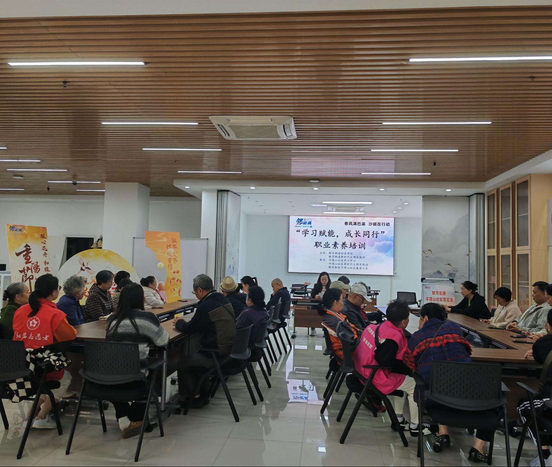 24939 次浏览 11-28为提升辖区居民职业竞争力,促进个人成长与发展,近日,联芳街道平顶山社区组织开展“学习赋能,成长同行”职业素养专题培训,吸引30余名社区居民参与。本次培训围绕职业认知、职场礼仪、沟通技巧及职业技能提升等