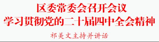 27480 次浏览 10-2810月27日下午,区委常委会召开会议,学习贯彻党的二十届四中全会精神,研究部署我区贯彻落实工作。区委书记祁美文主持会议并讲话。会议指出,党的二十届四中全会是在向第二个百年奋斗目标进军的新征程上举行的一