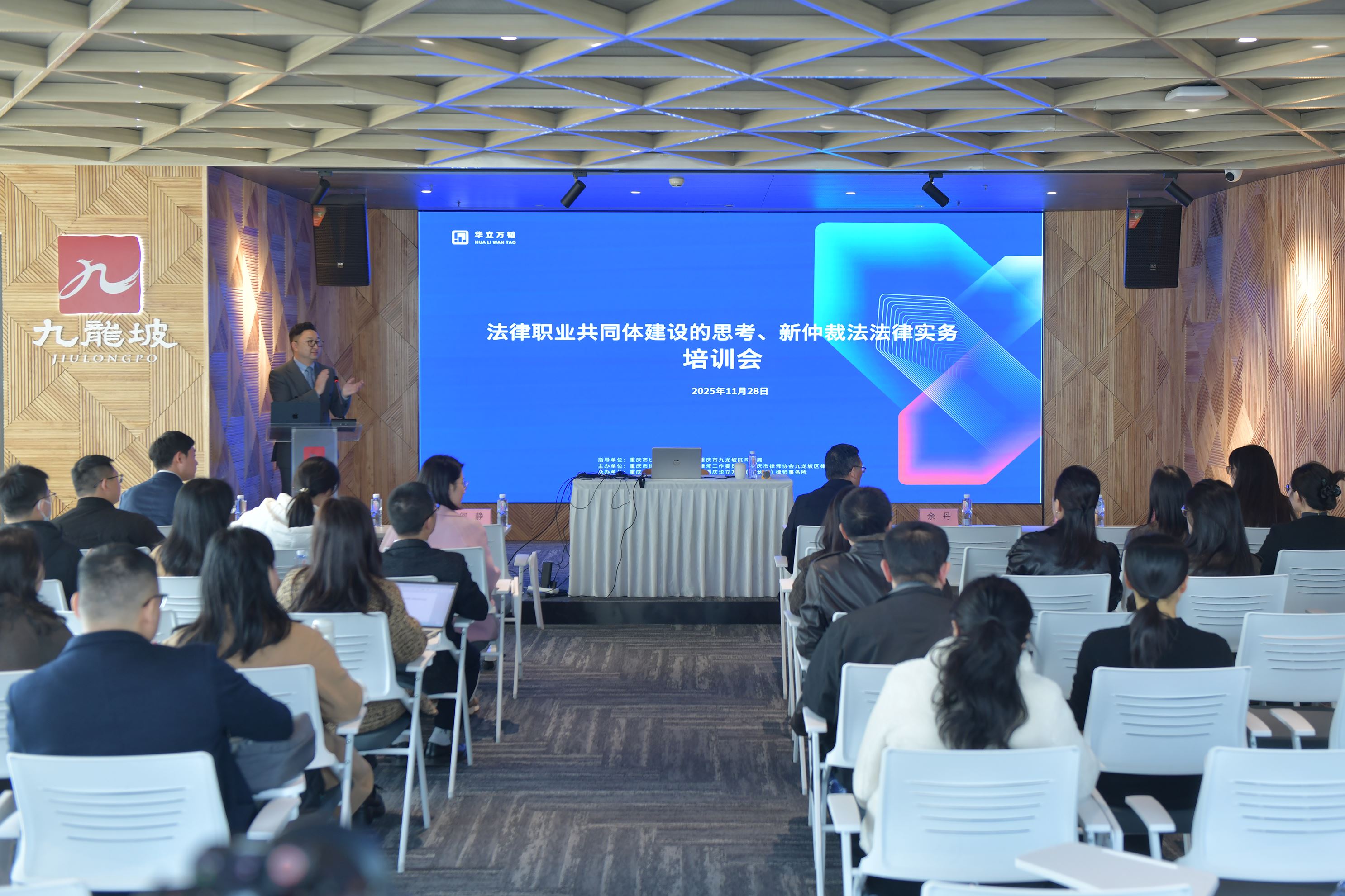 11091 次浏览 11-28为深化跨区域司法行政合作,共促律师行业高质量发展,进一步提升法律服务专业化水平,11月28日,由沙坪坝区司法局、九龙坡区司法局联合指导的“法律职业共同体建设与新仲裁法实务”专题研讨会在九龙坡区顺利举行